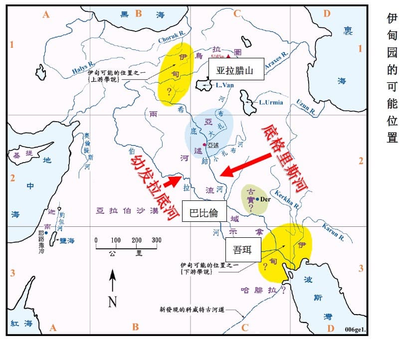 1. 伊甸:根据苏美尔文,“伊甸”是草原或野地。闪族语“伊甸”,解“富庶”或“喜悦”。洪水后地形改变,精准位置无法确定。不过,学者从圣经能大概推断它的位置。创2:10-14记与伊甸园有关的四条河流(比逊、基训、希底结、伯拉河)、三个地区(哈腓拉、古实、亚述)。经圣经学者和考古学家考究,其中希底结河、伯拉河地点可确定。新标点和合本/和修本将希底结河译为底格里斯河,伯拉河则译为幼发拉底河。所以,可推断伊甸园在两河流域,即美索不达米亚一带。学者比较公认的说法有两个:一是“上游说”(伊甸园在两河流域的源头,两河流域北部);一是“下游说”(伊甸园在波斯湾北端,底格里斯河和幼发拉底河的入海处,美索不达米亚南部)。可参考附上的地图。