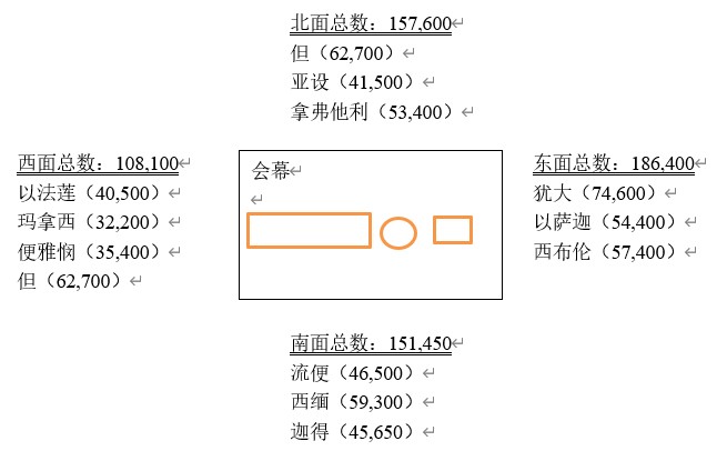 1. 第一次数点二十岁以外能打仗的男子(民1:1-3、45-46),共603,550名(图四)。